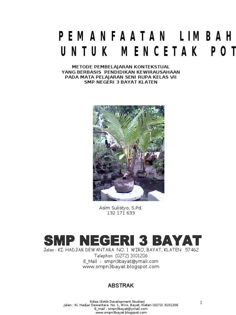 Karya Ilmiah Pot Bunga SMPN 3 Bayat Klaten . Sumber Gambar : www.scribd.com